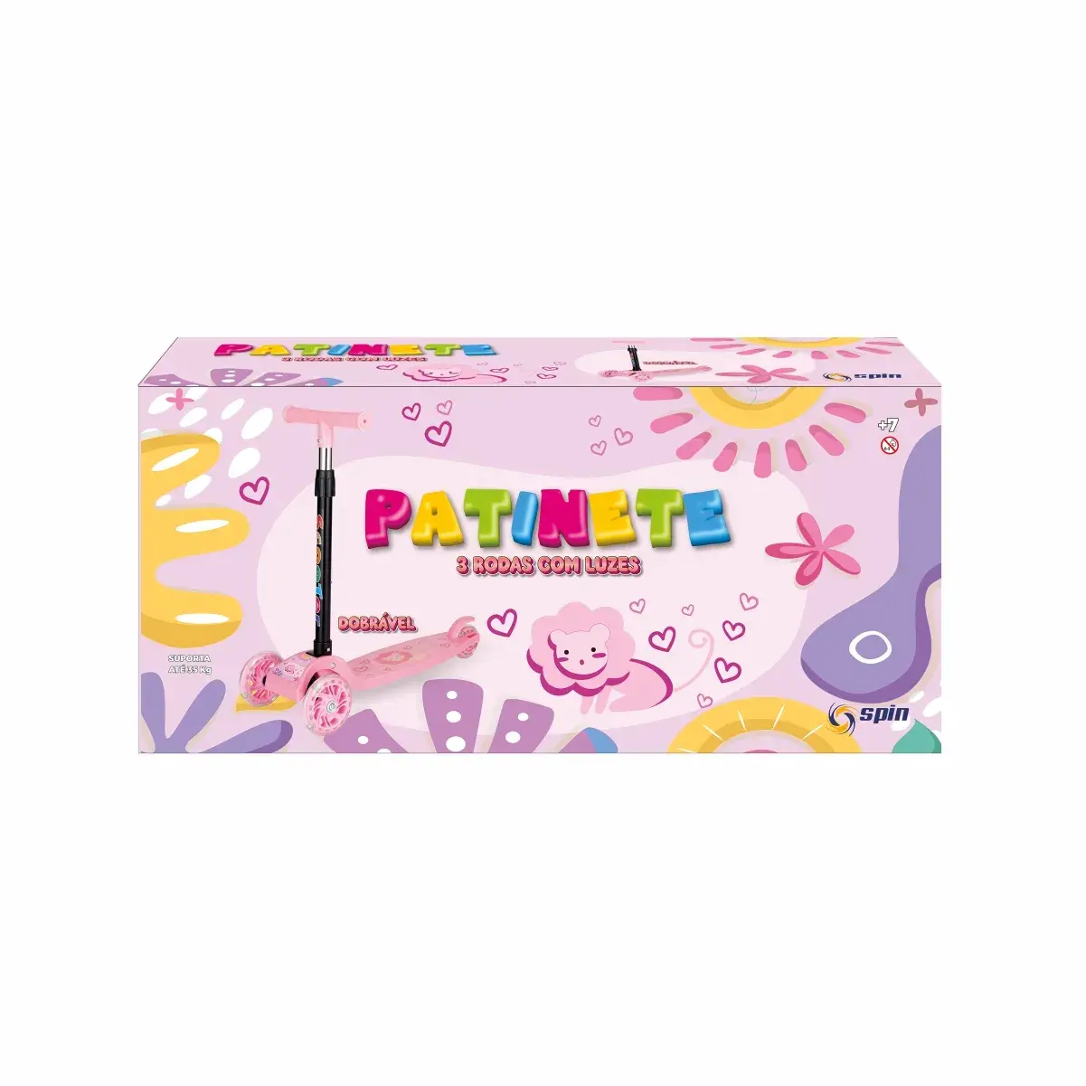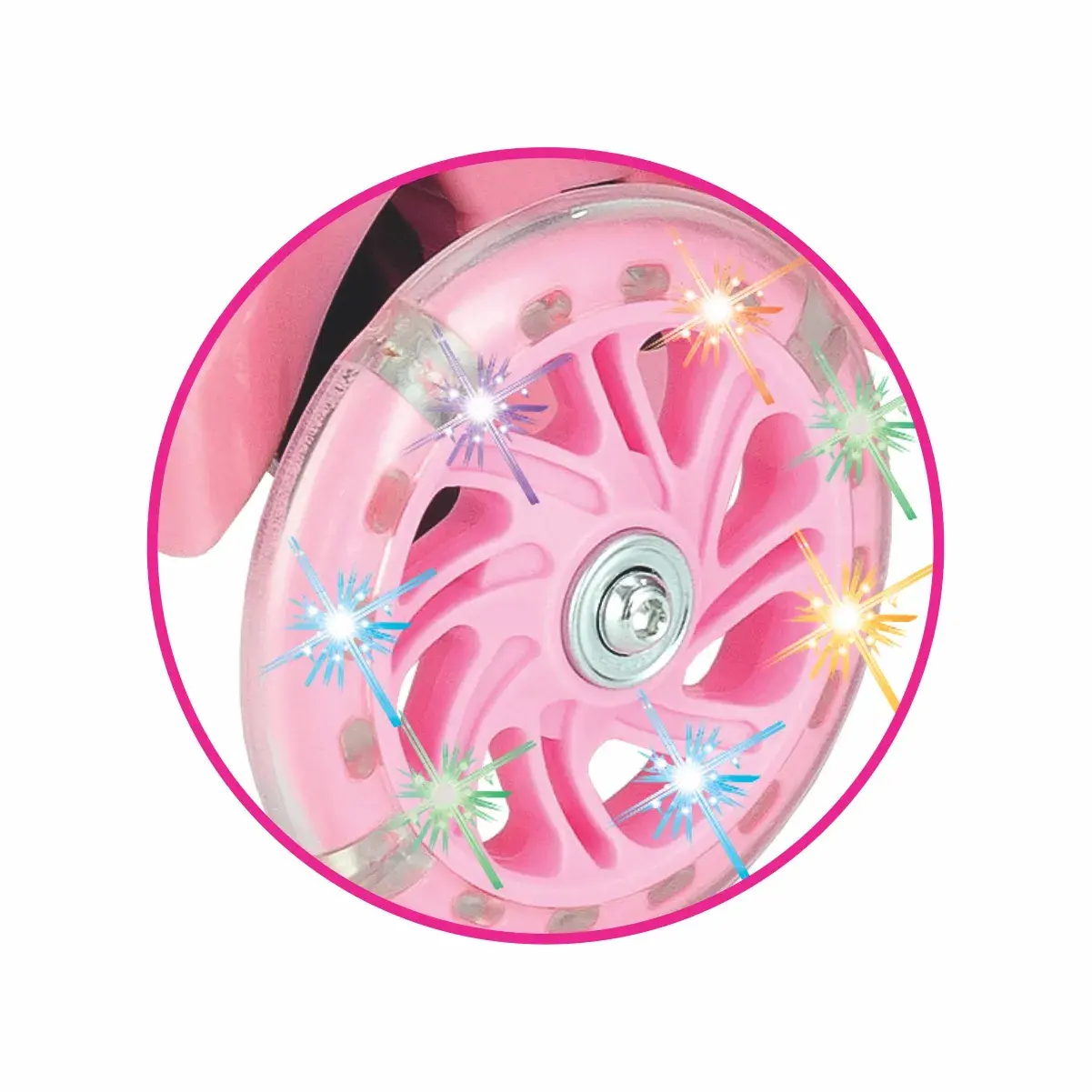 DESCRITIVO: PATINETE DOBRÁVEL 3 RODAS COM LED COLORIDO HASTE DOBRÁVEL COR ROSA